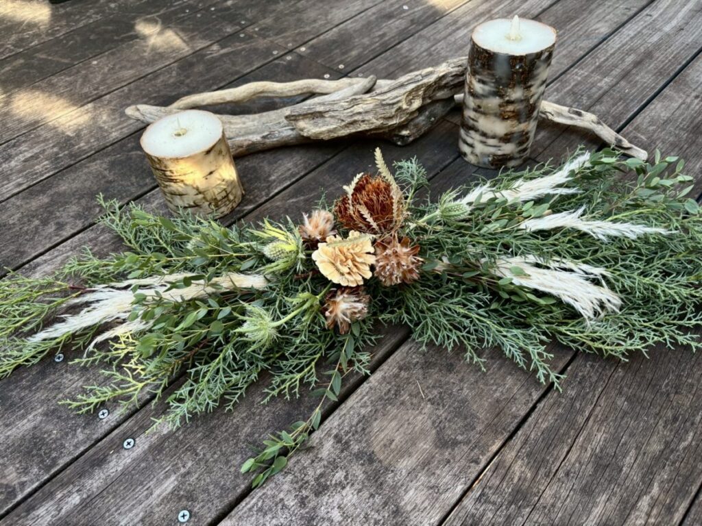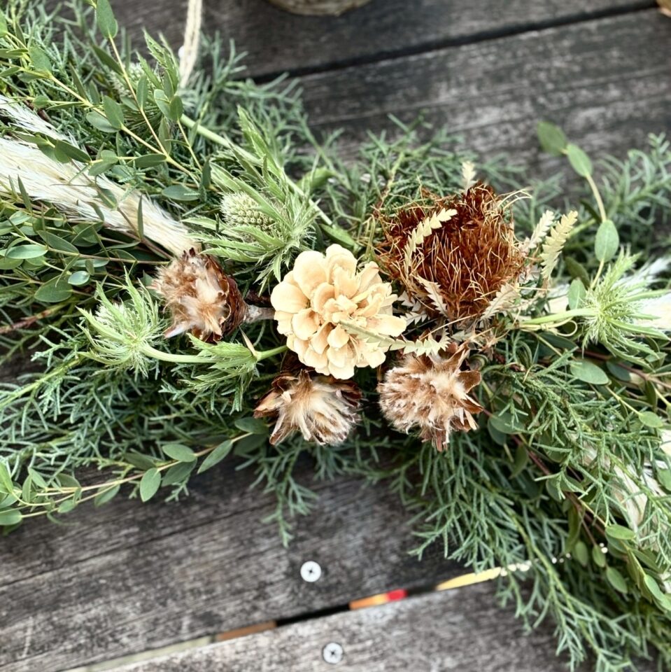 自分の手で作るスワッグは、心を豊かにし、気分を高め、幸運を呼び込むかのような特別な存在です。このマインドフルなひとときを、皆さまと一緒に楽しめることを心から楽しみにしています。