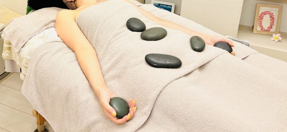鉄分、マグネシウムを多く含む遠赤外線効果のある天然石で体の深層部まであたため血行を促しながら施術をします。
