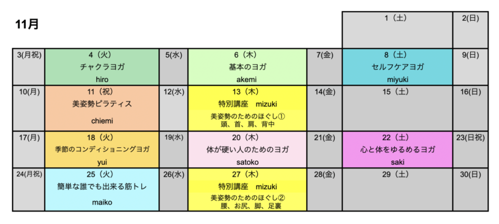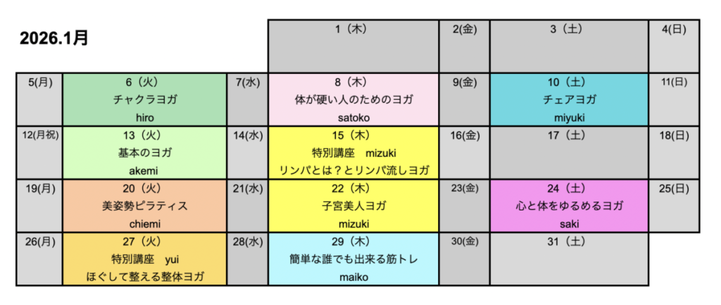 【2025.11月〜2026.1月】オンラインヨガスケジュール