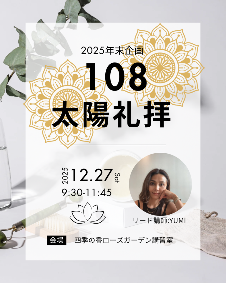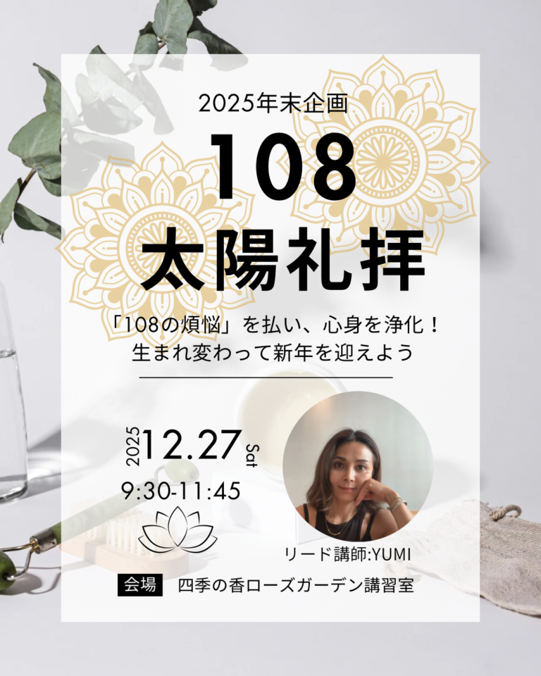 煩悩の数108、除夜の鐘の数の分だけ、太陽礼拝を行うことで心も体も浄化して、新年を迎える準備をしましょう!